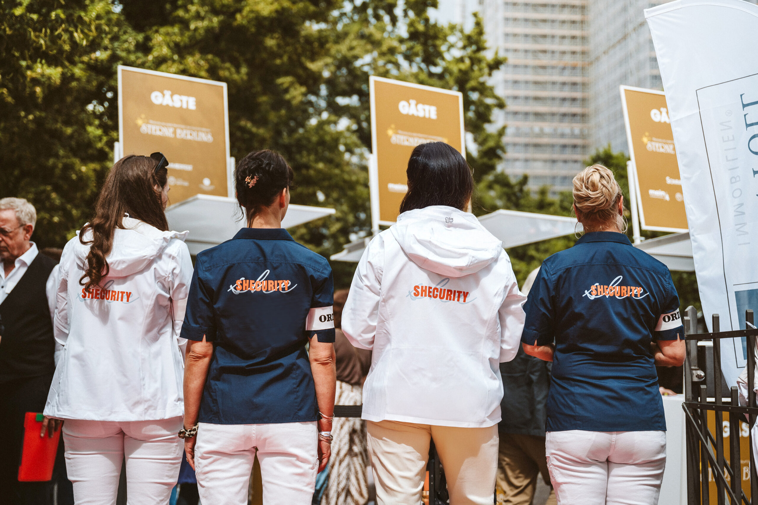 SHECURITY ist ein innovatives Sicherheitsunternehmen, das weibliche Sicherheitskräfte einsetzt. Unsere Mitarbeiterinnen sind umfassend in Selbstverteidigung und Kommunikation geschult, um sowohl in brenzligen Situationen als auch im Umgang mit Menschen professionell und empathisch zu agieren.